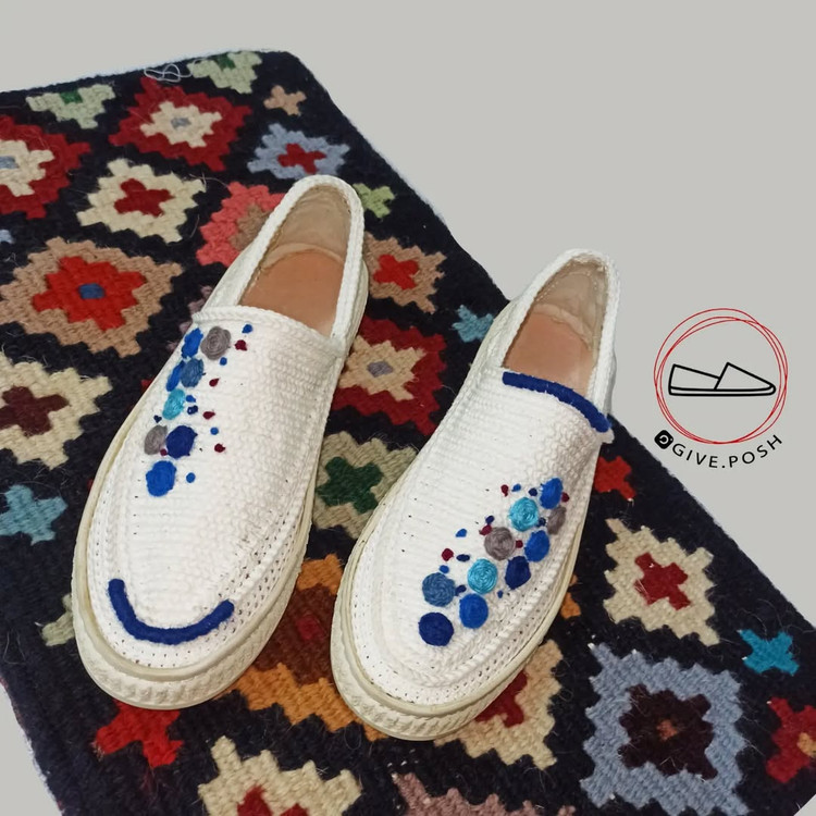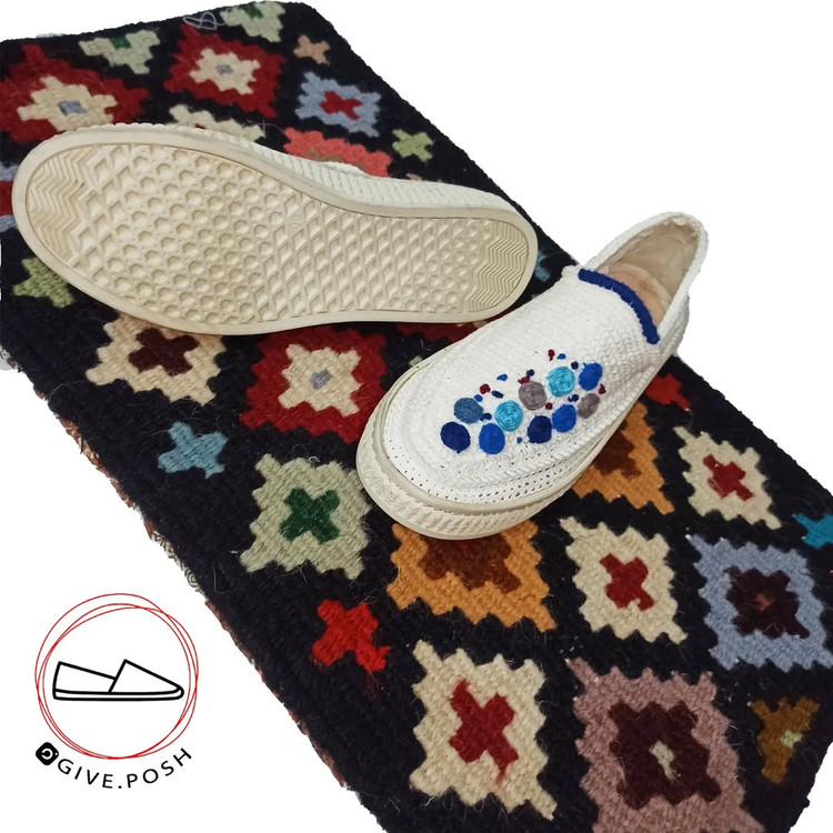 گیوه زیره لاستیک ترک گلدوزی شده گل آبی