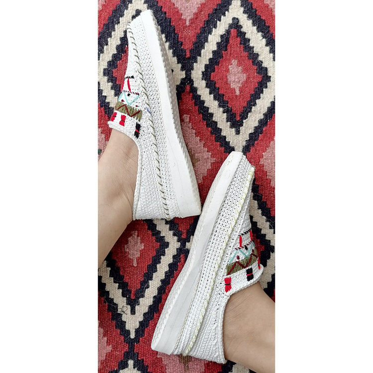 گیوه زیره اسفنجی گلدوزی شده سفید