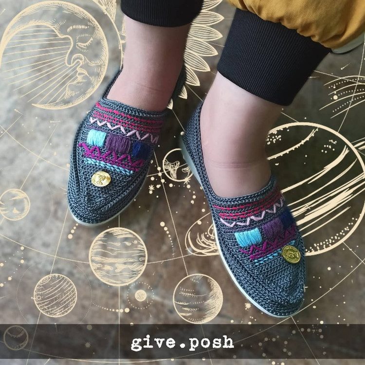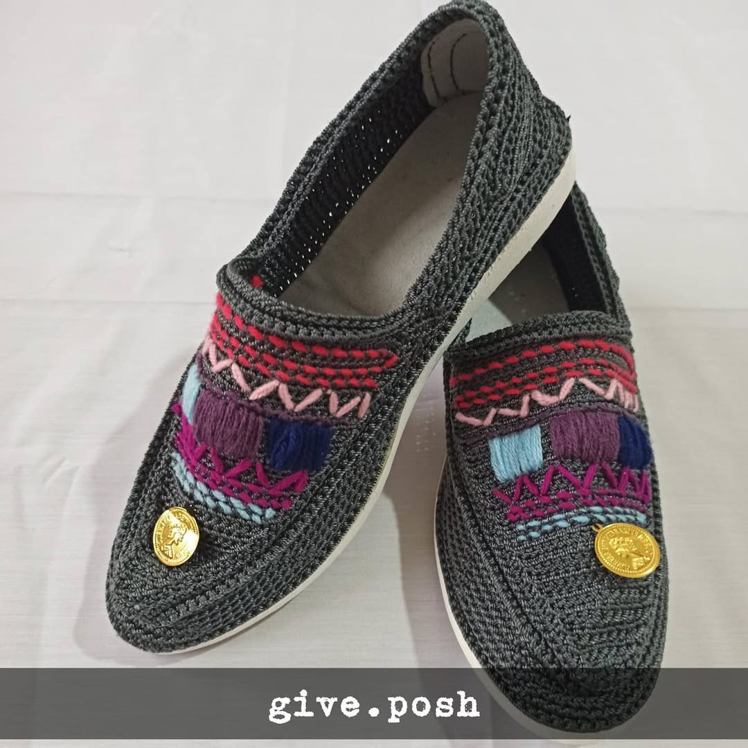 گیوه طوسی زیره اسفنجی سفید گلدوزی شده رویه ابریشمی رنگ ثابت